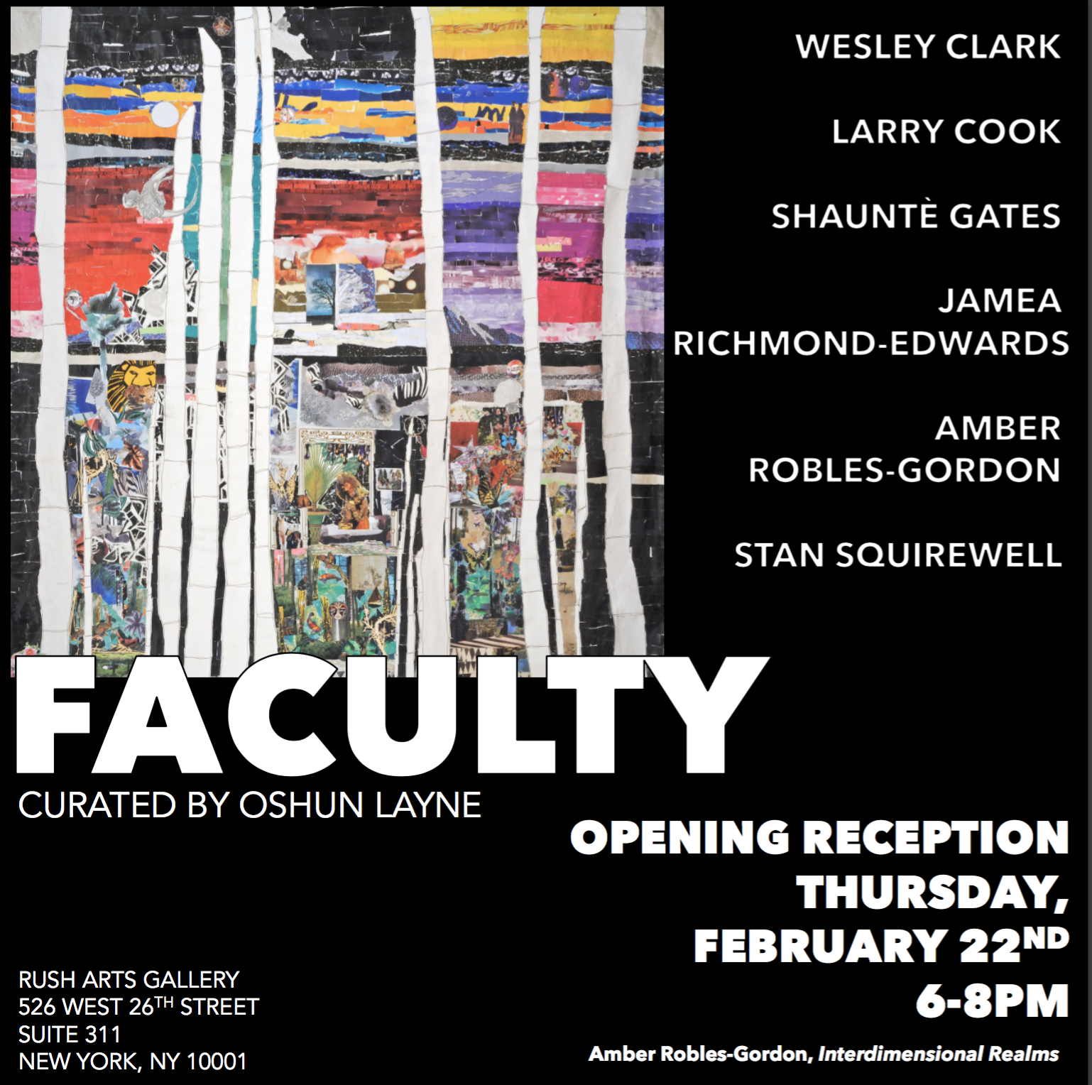 Faculty will run from February 22nd through April 5th, 2018 at Rush Arts Gallery (located at 526 West 26th Street, Suite 311, New York, NY 10001). An opening reception will be held on Thursday, February 22nd, 6:00-8:00 p.m.