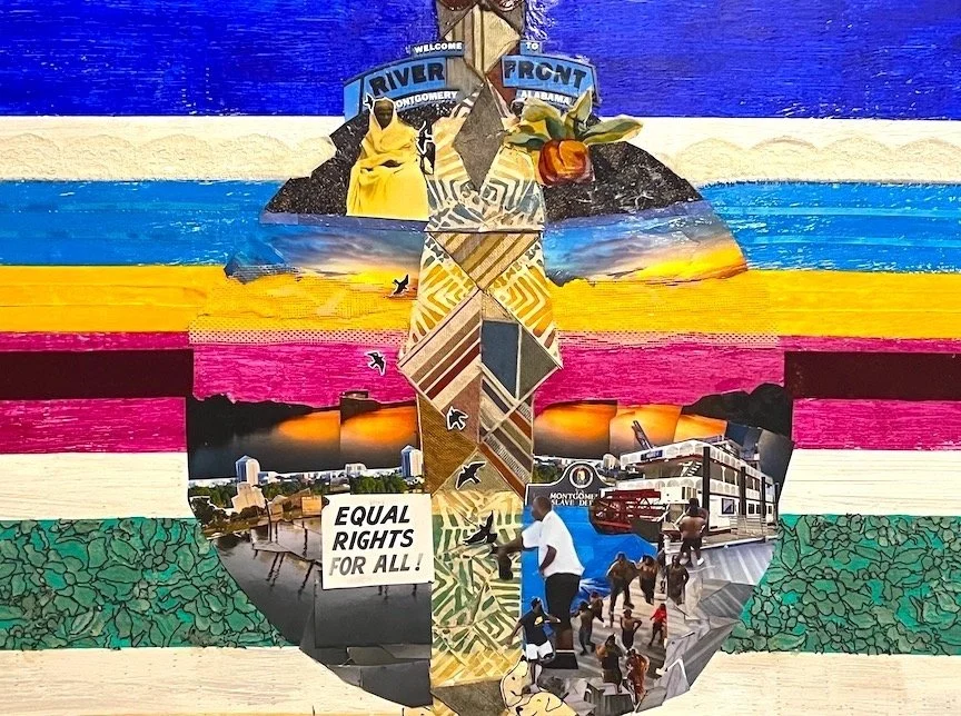 Montgomery Brawl, Mixed Media Collage on Wood, 44 x 47 in., 2023