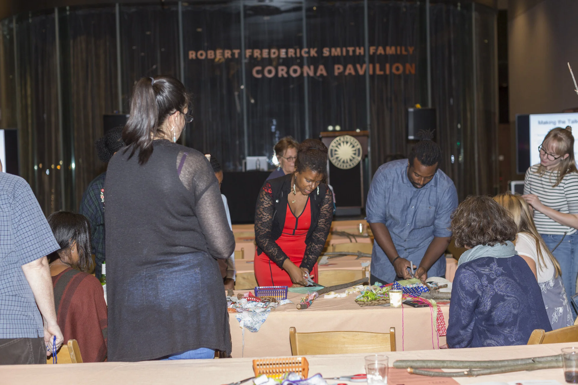 Art + Justice is a platform for adults to explore the intersection of tactile art-making, thoughtful reflection, and personal enrichment. Through artist-led guided projects audiences unlock their creative potential within themselves, while also enjoying the opportunity to exchange ideas with community towards social justice. art + justice is a hands-on maker space that stimulates creative agency, while providing the mental and emotional space to work through complicated issues around race, gender, identity, and social cohesion. Through art + justice the museum provides a rare creative outlet where audiences can interact with professional artists, experience expert techniques in a variety of art practices, and explore motivations for creating art. Art projects are designed to accommodate all skill levels. Audiences can take home their creations.