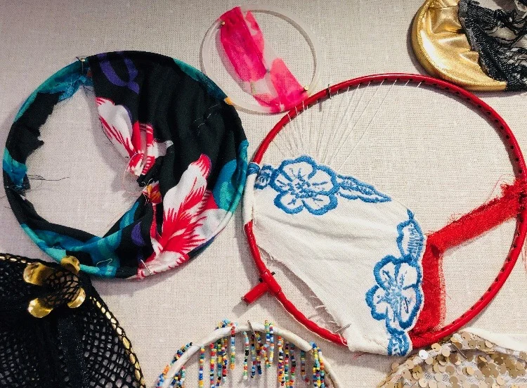 Each additional commissioned versions of With Every Fiber of My Being have been site-specific installations and includes an average of 70-130 hand sewn circular forms. Contact amberroblesgordon@gmail.com regarding commissions and pricing.